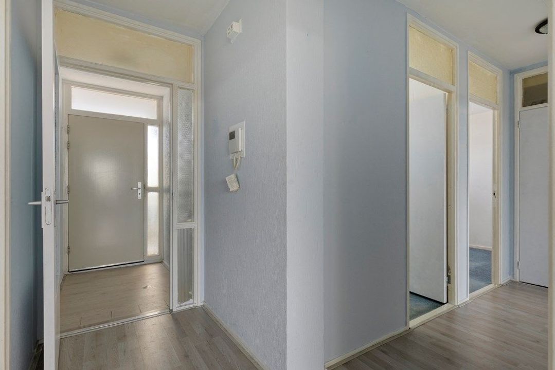 Bij binnenkomst van de woning treft u de tussenhal aan. Vanuit de hal heeft u toegang tot alle andere vertrekken zoals de woonkamer, slaapkamers, badkamer, toilet en berging.